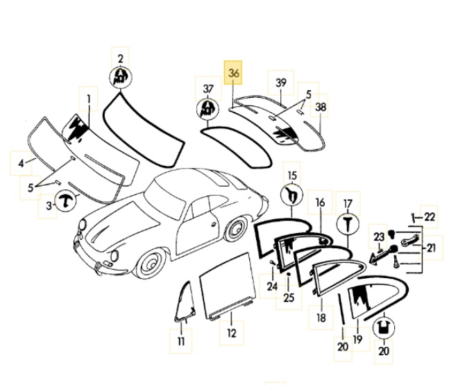 Heckscheibe Klarglas - 356- 356B T5 - Original Sekurit - 644 545 101 00